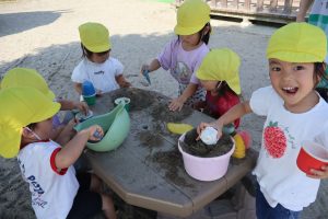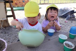 お砂遊びを楽しんでいた0歳児さんたち💛
