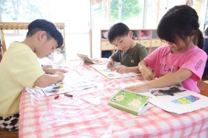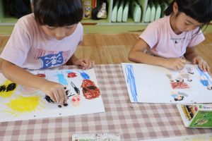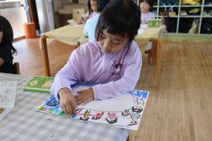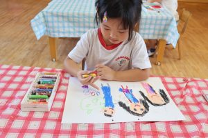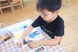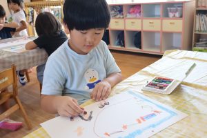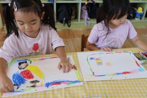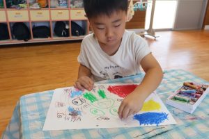 6日の月曜日は、こあらぐみ、うさぎぐみの子どもたちが運動会の思い出をお絵描きしていました🥰