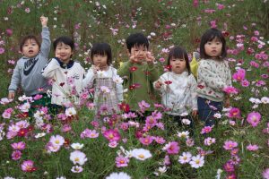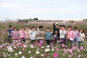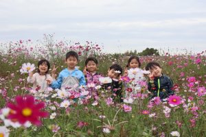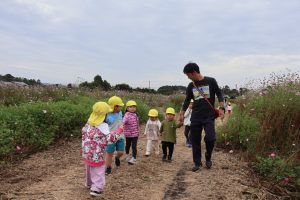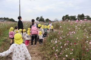 今日は、秋を探しに1歳児~年長児さんで中沖小学校横のコスモス畑に行きました😊🎵