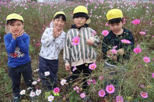 子どもたちの身長より大きいコスモスもあり、「おおっきいね!」とびっくりしている子もいました😆✨