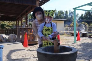 火起こしも順調に進み、もち米もふっくらと炊けました😊