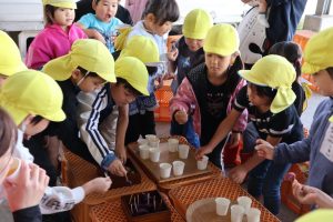 穴あけ作業も子どもたちにはとても人気な作業で、