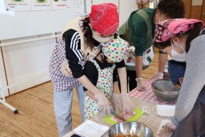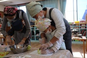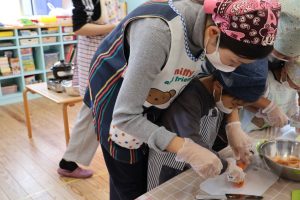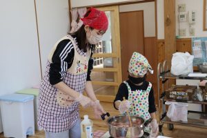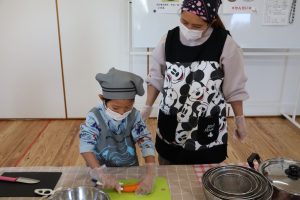 さっそくエプロンを付けて挑戦!とっても似合っていますね😊😊