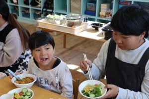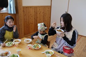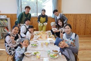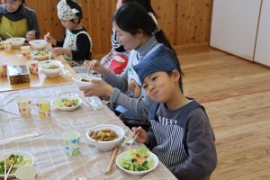 自分たちで作ったご飯にみんな自然と笑顔😊😊😊